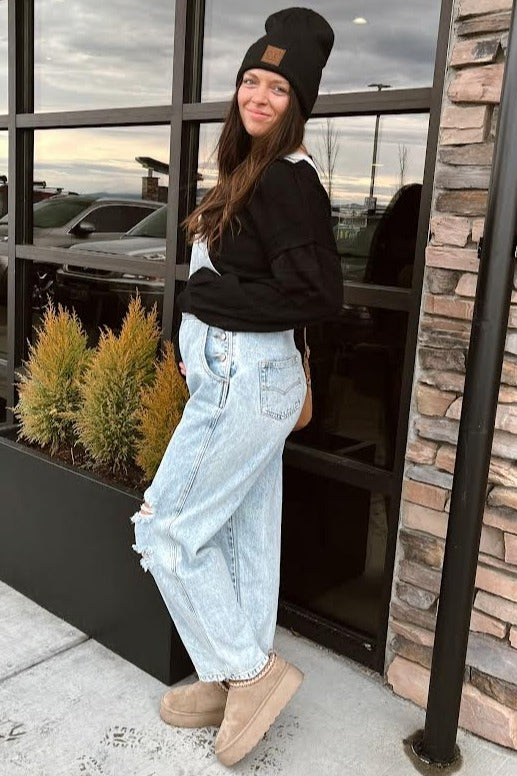 Black Boat Neck Bubble Sleeve Maternity Sweater