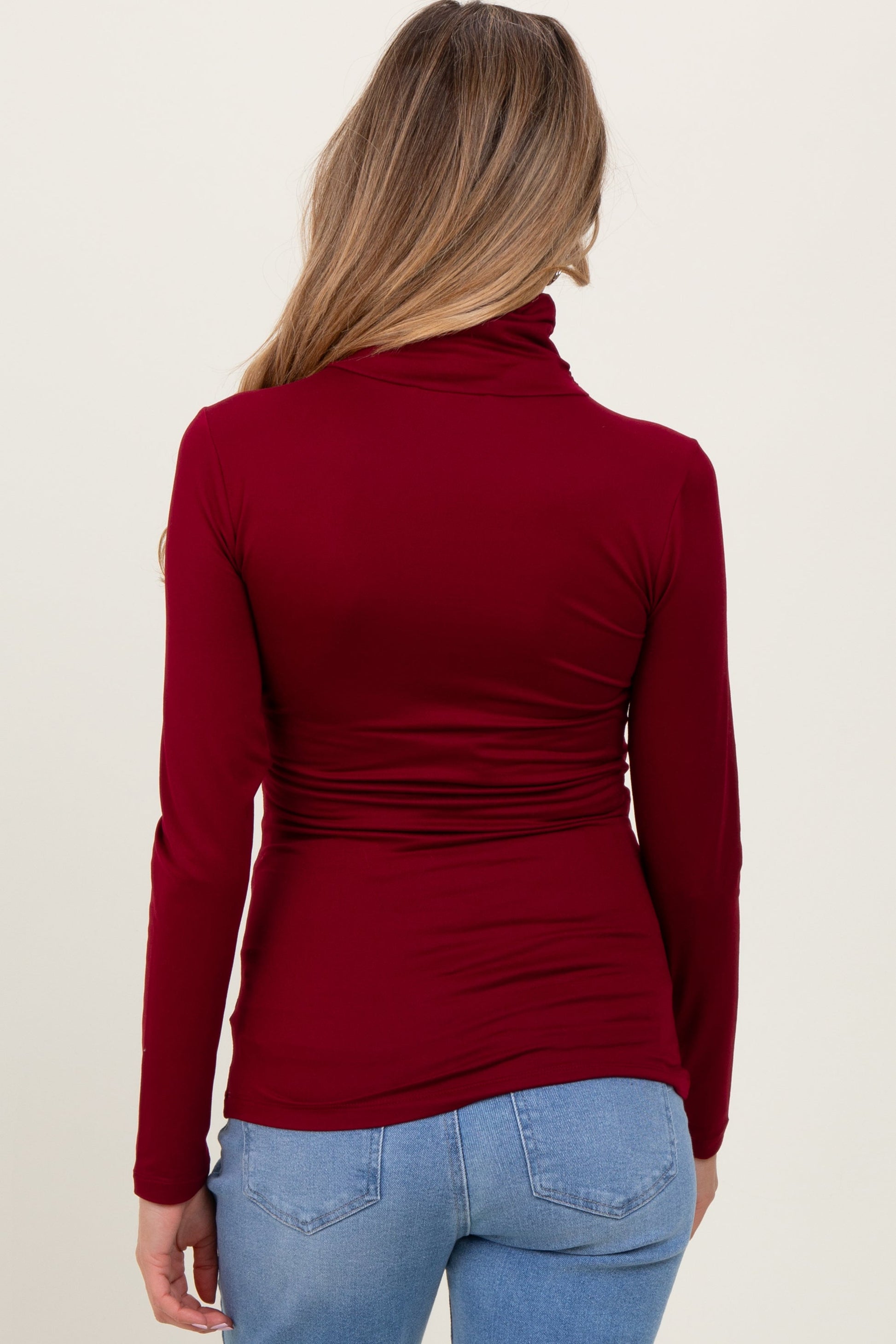 Burgundy Brushed Knit Basic Turtleneck Maternity Top