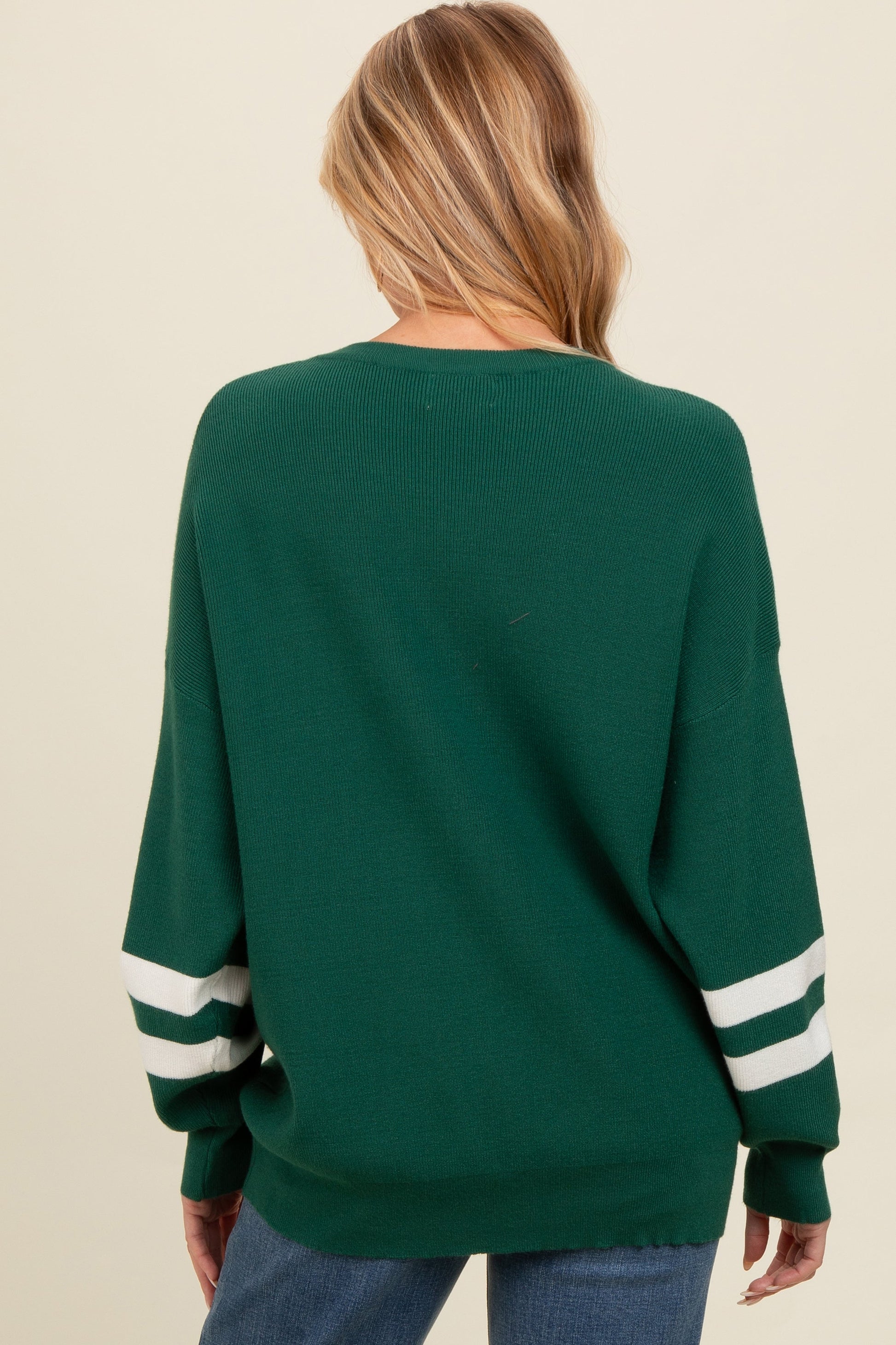 Forest Green Striped Sleeve Relaxed Fit Maternity Sweater