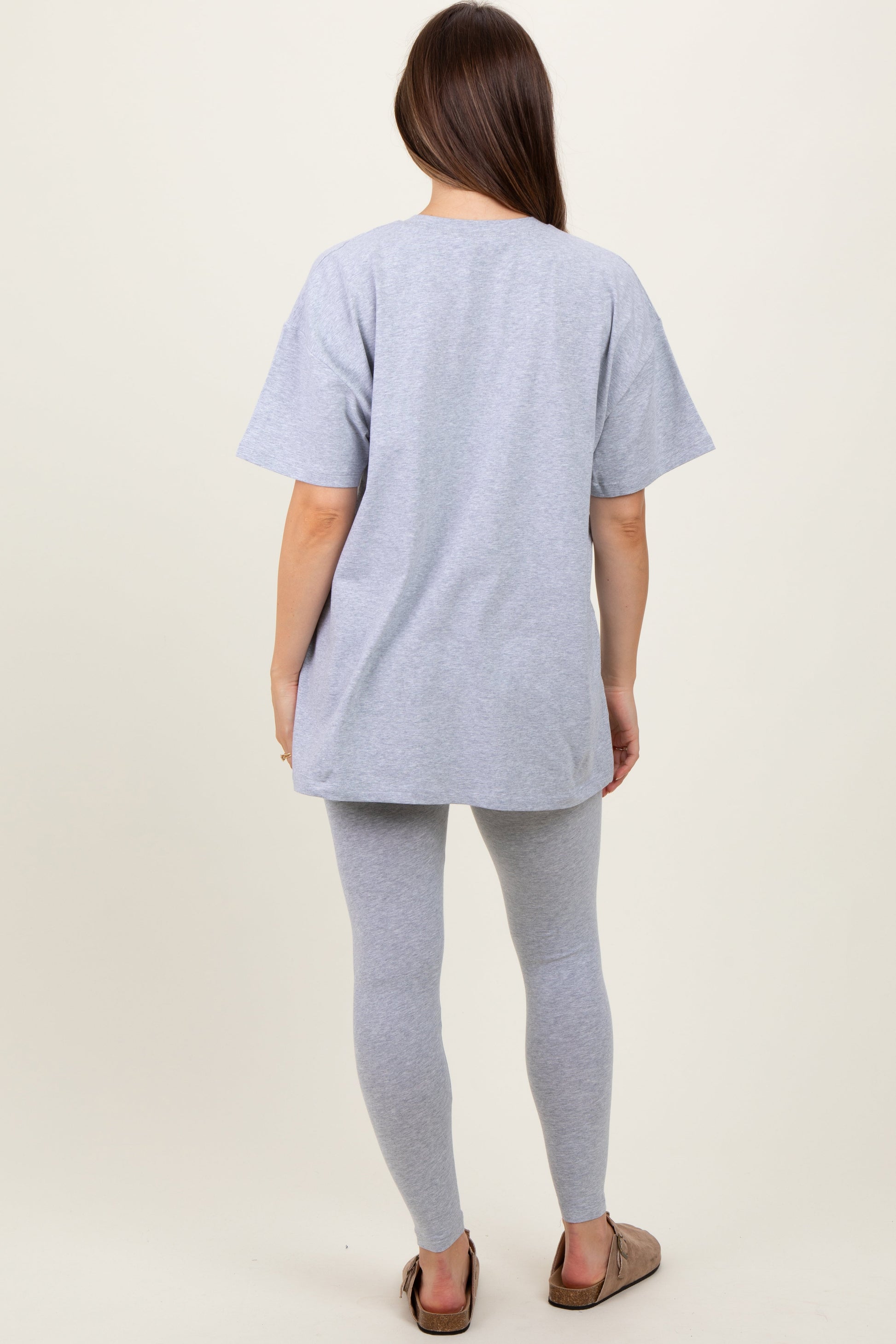 Heather Grey Oversized Crewneck Short Sleeve and Legging Maternity Set