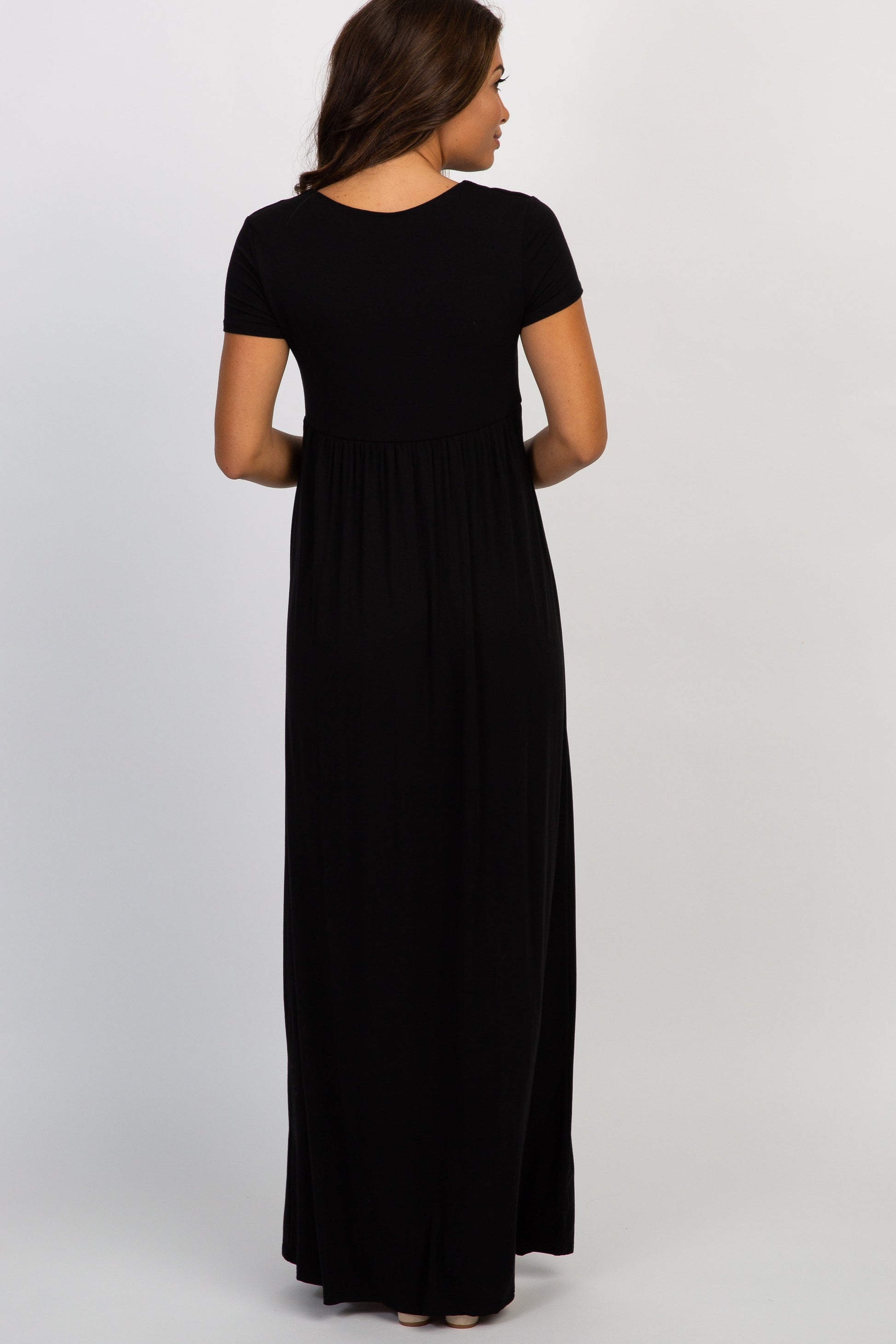 PinkBlush Petite Black Draped Maternity/Nursing Maxi Dress