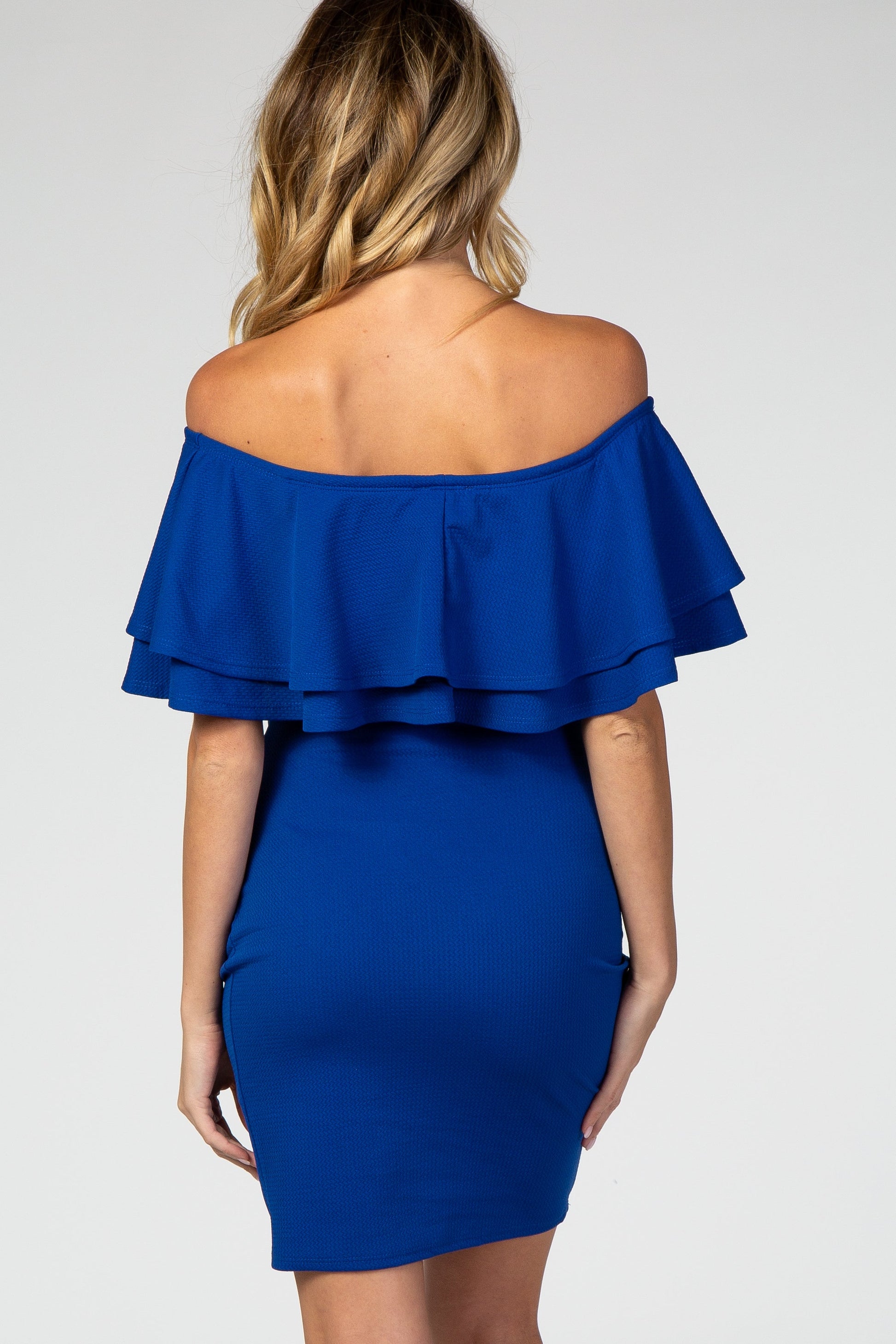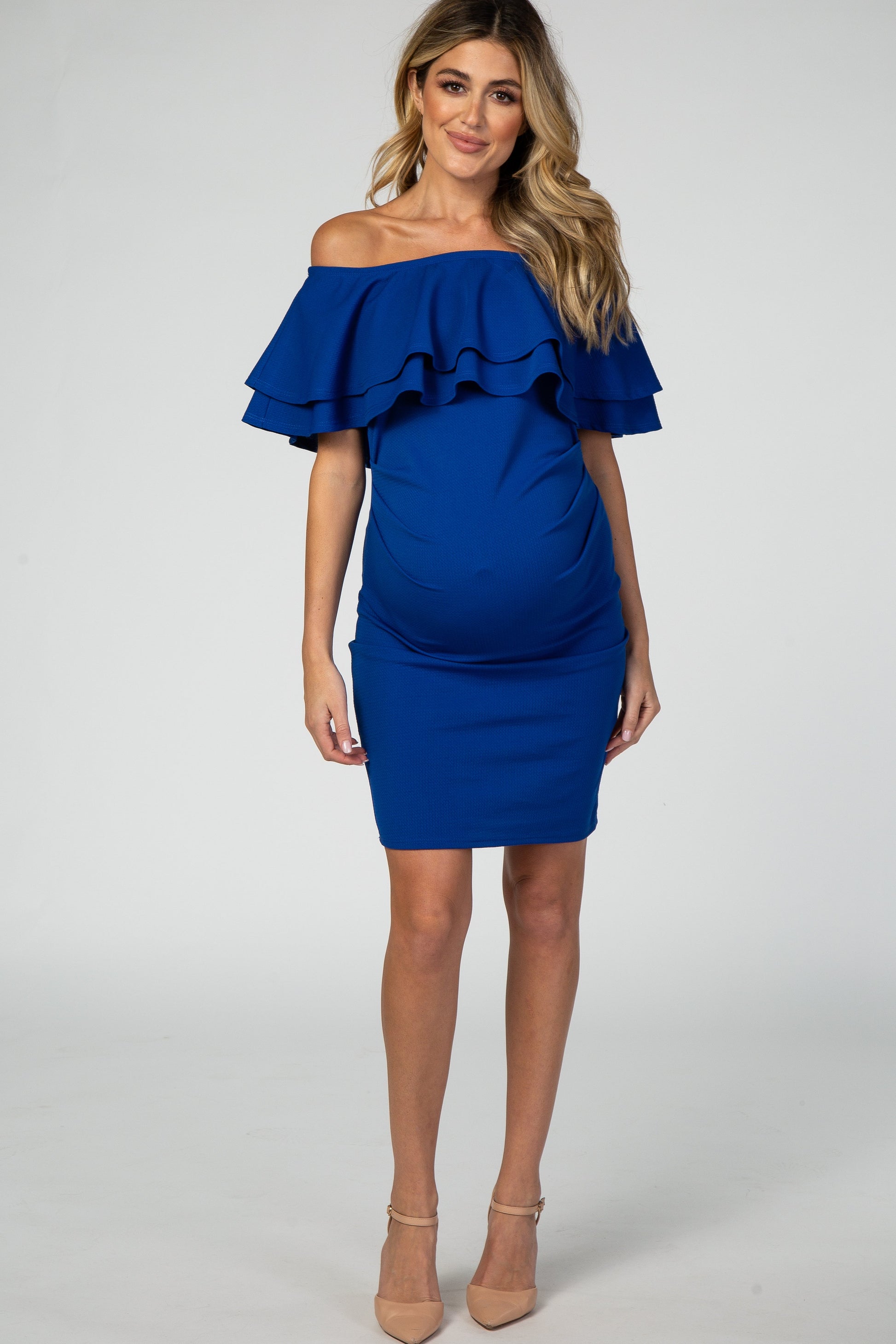 Royal Blue Off Shoulder Ruched Maternity Dress