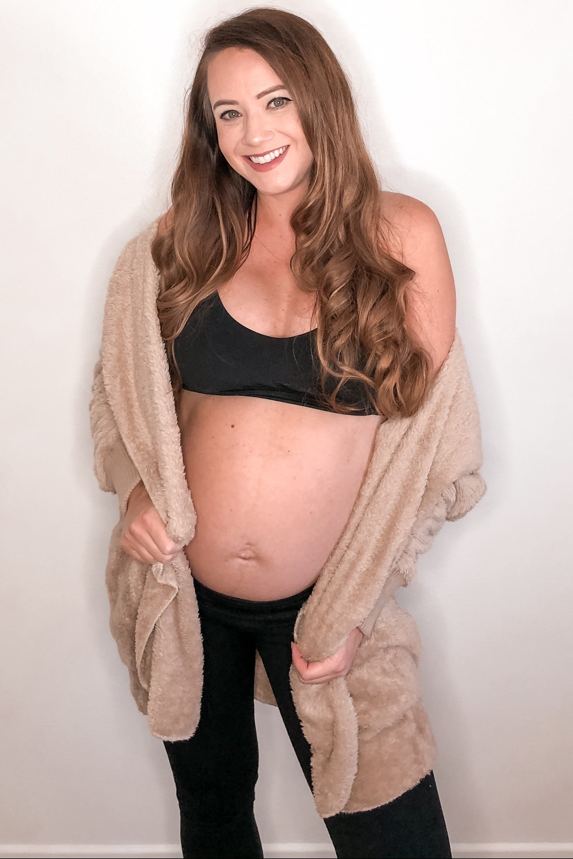 Taupe Fuzzy Hooded Long Sleeve Maternity Jacket